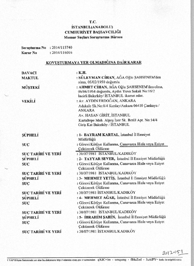 33 yıl sonra, Cumhuriyet Savcısı; Süleyman Cihan’ın